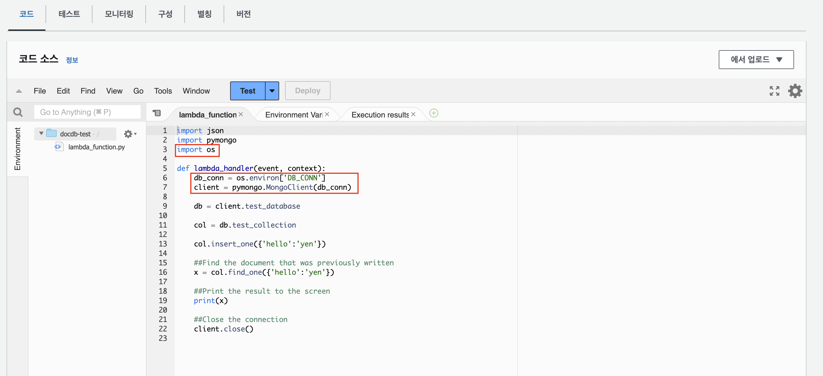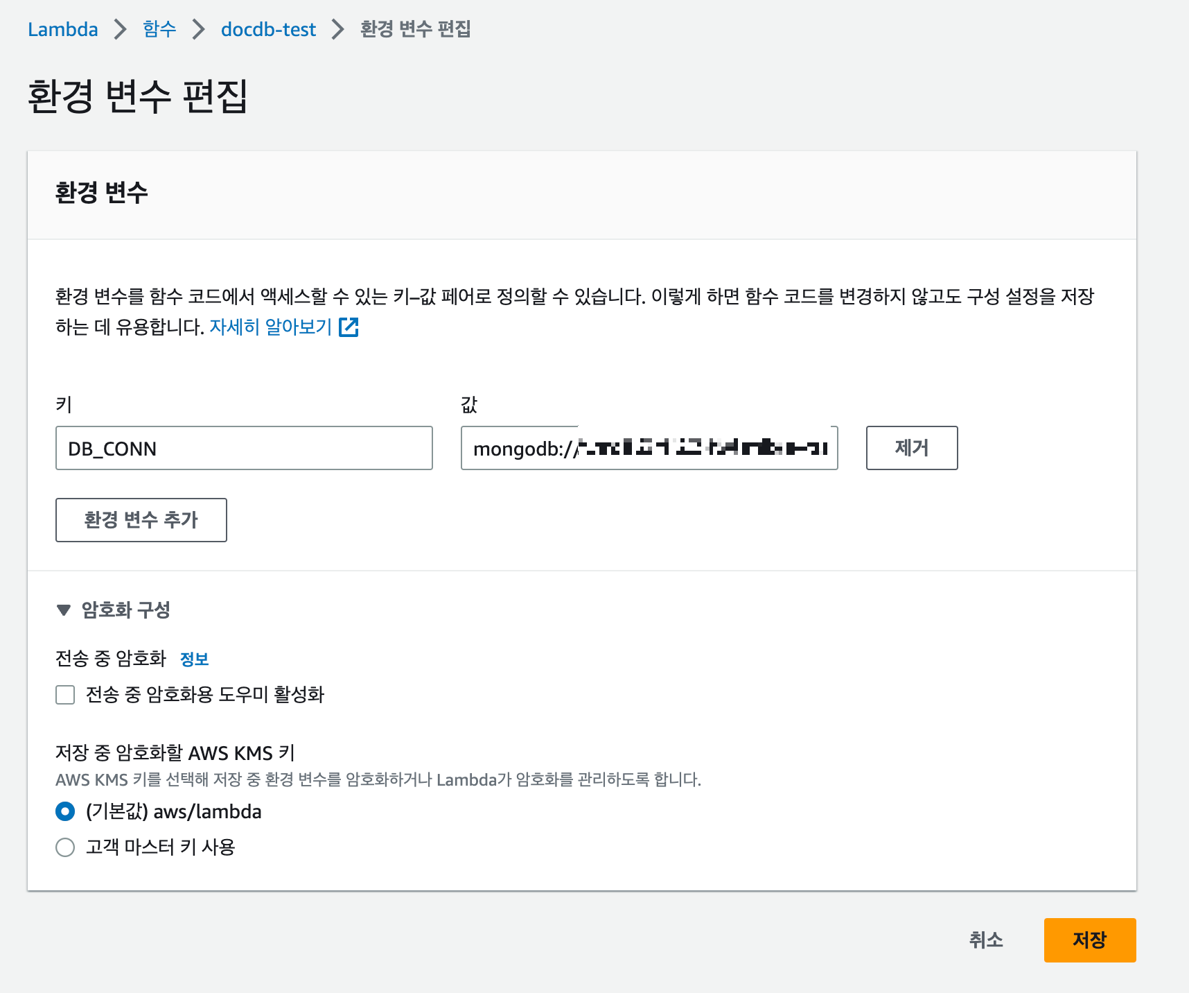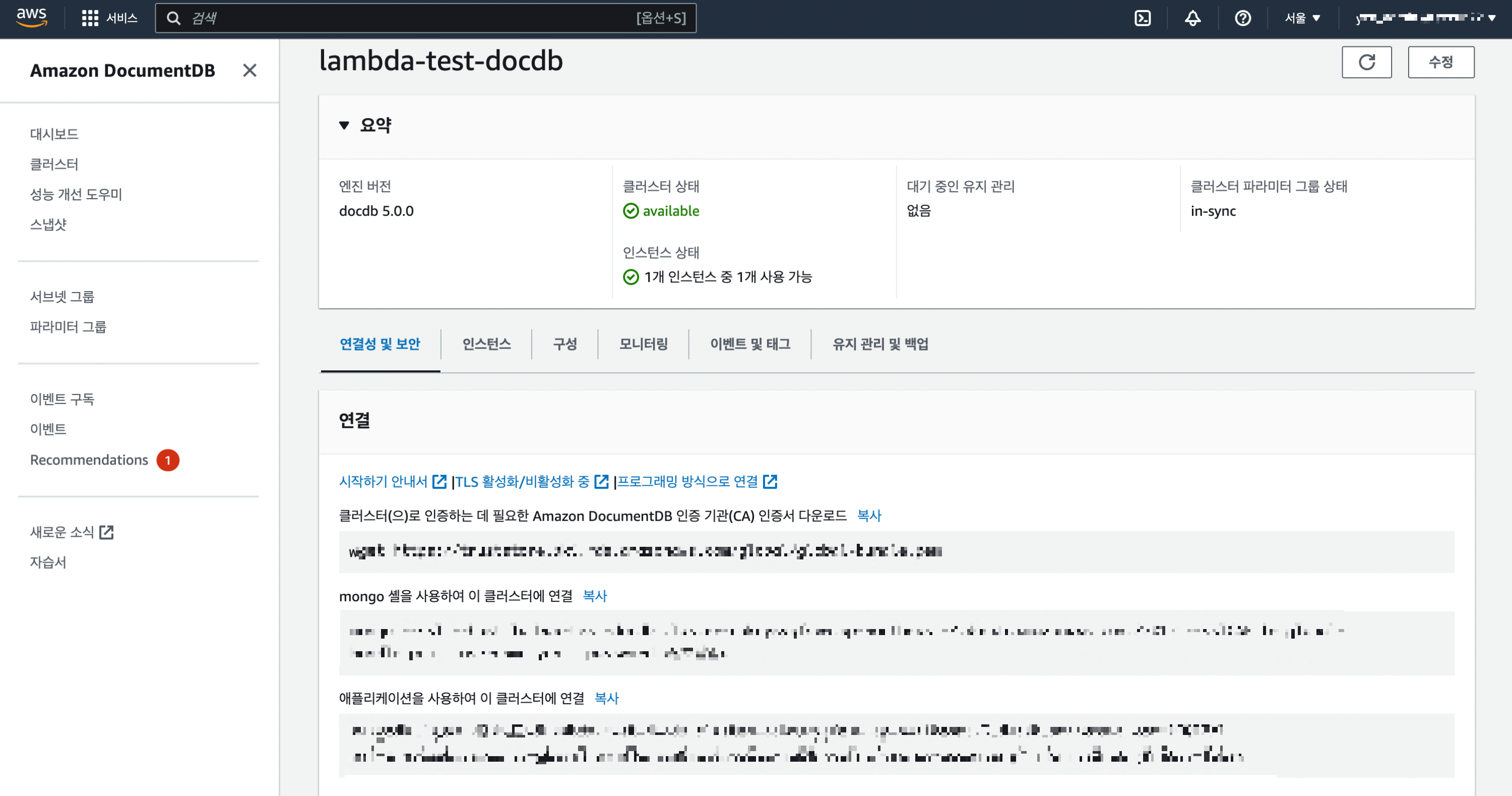지난글에 이어 이번엔 Lambda 에서 DocumentDB 연결 방법을 정리해보려고한다.