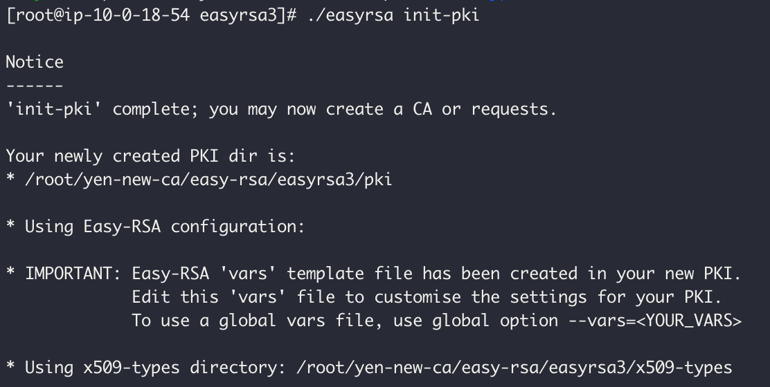 $ cd easy-rsa/easyrsa3 $ ./easyrsa init-pki