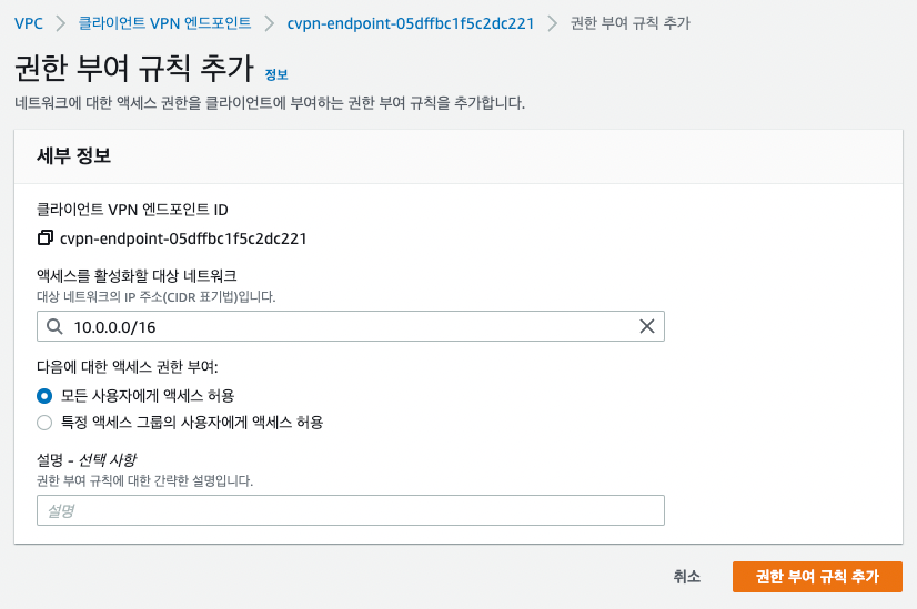 클라이언트 VPN 엔드포인트 설정