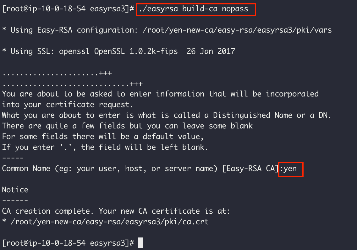 $ ./easyrsa build-ca nopass